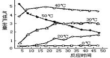 8.下图表示不同温度下酵母菌发酵时气体产生量与反应时间的关系。由图可知