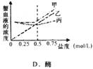 A.盐度小于0.5 mol/L时,甲蟹调节血液浓度的能力最强 B.对血液浓度调节能力最强的是乙