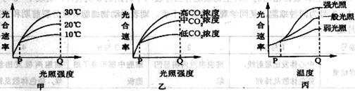 (4)甲、乙、丙三图分别表示几个环境因素对马铃薯光合作用速率的影响,除各图中的所示因素外,其他因素均控制在较适宜的范围。请据图回答以下问题: