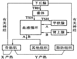 (2)寒冷环境中 A和B激素在血液中的含量 ;常温下,血液中A有增加趋势时,TRH和TSH的分泌量将_______,这种调节属于________________调节。