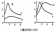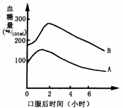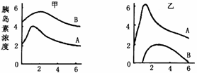 (4)下图中能正确表示二人血液中胰岛素变化的是( )。(纵坐标表示胰岛素浓度,横坐标表示摄取葡萄糖后的时间)