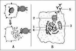 为___________起作用,使其体内产生了相应的免疫活性物质,该过程曾出现右图_________(填A或B)所示的现象,这种反应属于________免疫。