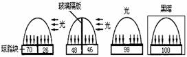 下图是燕麦胚芽鞘尖端在不同的光照条件下,经过一定时间后,定量测定琼脂块中生长素的含量,就测定结果进行分析,正确的是