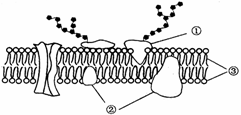 9.右图是细胞膜的亚显微结构模式图,①-③表示构成细胞膜的物质,有关说法错误的是