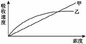 下图是测定了某种生物的细胞对甲、乙两种物质吸收的速率与该物质浓度的关系绘制成的曲线,请仔细分析后,你认为下列四种说法中正确的一项是