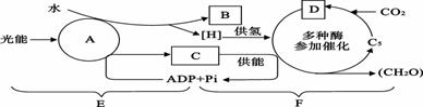 ⑶在E阶段中物质的变化有:将水分解成B:______和[H];ADP和Pi生成C:____。