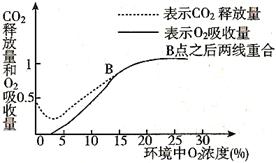 (3)该器官CO2的释放与O2的的吸收两条曲线在B点相交后重合为一条曲线,这表明该器官在B点以后的呼吸作用方式是