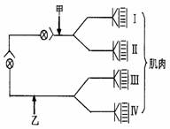 20.部分神经元之间的联系如右图所示,分别在甲、乙两处提供适宜刺激,引起肌肉收缩的情况是