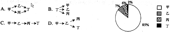 45.右图表示某生态系统中,四种生物所同化的有机物的量占该生态系统有机物总量的比例,则这四种生物之间的食物关系最可能的是( )