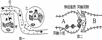 47.(12分)根据下列两个图回答问题:图一是分泌细胞(甲)分泌的某种物质(①)与靶细胞(乙)结合的示意图: