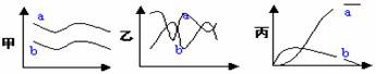 图示分别a、b两个物种随时间推移的数量变化,甲、乙、丙三图表示的两者关系依次是( )