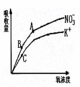 K+和NO3-的曲线。影响A、B两点和B、C两点吸收量不同的因素分别是