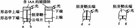 27、假设图中两个含生长素(IAA)的琼脂块和两个胚芽鞘尖端所产生的生长素量相同,一段时间后对a、b、c、d、e、f、g四个空白琼脂块中所含生长素量的分析正确的是( )