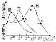 右图表示植物不同器官对生长素的反应,以下有关叙述中正确的是( )