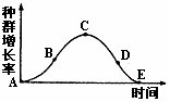 D.B时期是种群增长速率最快的时期,种群数量在K/2左右