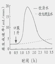 11.右图中曲线表示某健康成年人分别饮1升清水及饮1升生理盐水后的尿生成速率。错误的叙述是( )