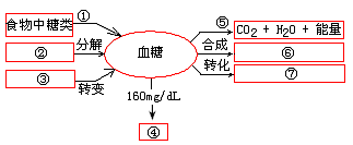 56. (5分)下图为血糖的来源和去路示意图,请填写下列内容:
