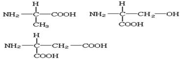 下面是三种氨基酸的结构式,由这三种氨基酸按顺序脱水缩合所形成的化合物中,含有氨基、羧基和肽键的数目依次是: