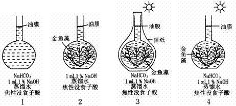 ⅲ.通过油膜向2、3、4号烧瓶中加入大小相似,生长状况相同的金鱼藻枝条,用黑纸将3号瓶包住,把4个烧瓶放在光下照射30分钟;