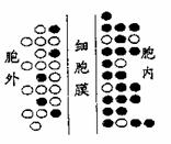 38.甲(〇)乙(●)两种物质在细胞膜两侧的分布情况