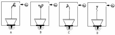11. 在方形暗箱的右侧开一小窗,暗箱外的右侧有一固定光源,在暗箱内放一盆幼苗,花盆能随着下面的旋转器水平匀速旋转,但暗箱不转,一周后,幼苗的生长状况应为( )