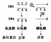 5.右下图为人类镰刀型细胞贫血症的病因,谷氨酸的密码子是GAA、GAG。由此分析正确的是