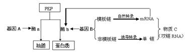 (9分)油菜的中间代谢产物磷酸烯醇式丙酮酸(PEP)运输到种子后有两条转变途径,如下图所示。科研人员根据这一机制培育出的高油油菜,产油率由原来的35%提高到了58%。请回答下列问题: