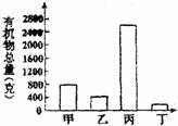 一个处于稳定状态的生态系统内有四种生物,并构成一条食物链。某一时间分别测得这四种生物(甲、乙、丙、丁)有机物的总量如图所示。如果乙的种群数量