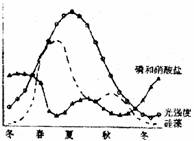 右图表示的是硅藻和一些非生物因子季节性的变化,数据来自北温带海洋的上层。以下哪项对图的解释是正确的( )