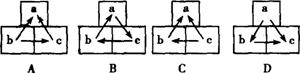 下图中,a、b、c表示某植物体的三个相邻的细胞,它们的细胞液浓度为a>b>c,则它们之间的水分渗透方向应是