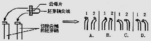 右图表示用云母片(不透水性)插入掩埋胚芽鞘的尖端的不同部