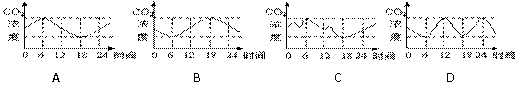 农技员为准确把握蔬菜大棚内CO2浓度的变化情况,在大棚内安装了CO2测量器,假定6时、18时分别为日出、日落时间,预期一天内大棚中CO2浓度的变化情况是 ( )