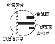 2.实验测定链霉素对3种细菌的抗生素效应,用3种细菌在事先准备好的琼脂块平板上画3条等长的平行线(3条线均与下图中链霉素带接触),将平板置于37℃条件下恒温培养 3 d,结果如图所示,从实验结果看以下关于链霉素的哪一叙述是不正确的