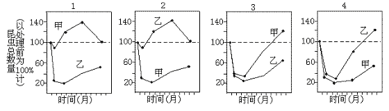 3.甲是一种能生活在多种土壤中的小型昆虫,常被昆虫乙大量捕食,DDT和aldrin是用于控制这些生物的杀虫剂,aldrin对甲和乙毒性相同,但DDT对乙的毒性比对甲更强,现用DDT和aldrin单独处理田块,下图中,哪2个图能分别代表DDT和aldrin单独作用时对害虫数量的影响