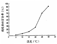 (2)请据右图分析实验结果: 在5-30℃范围内,荔枝果皮褐变面积百分率随温度升高而增加,表明果皮内多酚氧化酶活性随温度的升高而增强 。