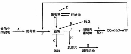 34.图是正常人的糖代谢途径及其调节的示意图,请仔细分析后回答下列问题: