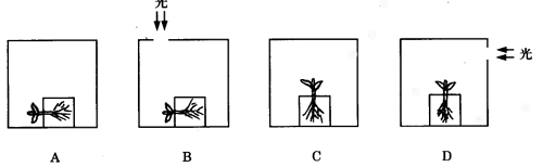 39.(6分) 为了观察植物的向性运动,将培植在琼脂培养基内的蚕豆幼苗分别放入4个暗箱中培养,实验装置如下图所示。请根据图回答: