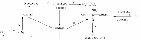 36.(13分)下图表示碳在人体内的转移途径以及在无机环境和生物群落中的循环流动,请据图回答: