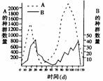 25.动物A和B生活在同一环境中,现将它们置于某一相对独立的环境并通过实验研究两者之间的关系,如图表示A、B在120d(d表示天)内的种群变化。以下说法错误的是