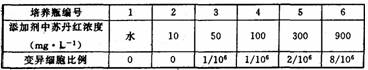32.(1)变异细胞占全部培养细胞的百分数 (2)第二步,向1号培养瓶中加入适量水,向2-6号培养瓶中加入等量不同浓度的苏丹红添加剂;笫三步,培养一段时间后,取样制成临时制片,观察记录变异细胞的数目;结论:低浓度的苏丹红毒性很小,100 mg·Lˉ1以上毒性明显