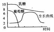 右图为大肠杆菌在含有葡萄糖和乳糖的培养基中的生长曲线。请判断下列说法正确的是