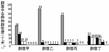 四个生物群落分别包含若干种群,下图中给出了这些种群的密度(每平方米的个体数),以下说法错误的是