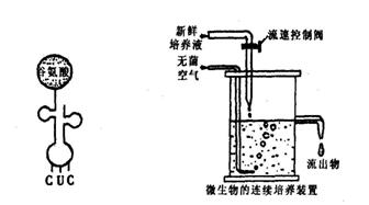 (4)谷氨酸发酵的培养基成分,主要有葡萄糖、氨水、磷酸盐、生物素等,发酵装置如右上图所示。可以判断谷氨酸棒状杆菌的新陈代谢类型是 。某厂用谷氨酸棒状杆菌发酵生产谷氨酸,结果代谢产物中出现了大量的乳酸,其原因很可能是 。