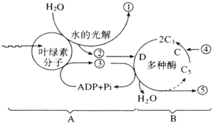 (2)光合作用的过程可以分为两个阶段, B表示: 阶段。