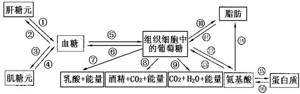 65.(7分)人和动物体内糖类、脂类和蛋白质的代谢是一个相互联系、相互制约的协调统一的过程。某学生将体内营养物质代谢的部分途径归纳如下图所示。据图回答下列问题: