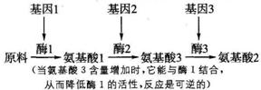 右边的图示表明,某种原核生物通过一套酶系统将某种原料转变成自身必需的氨基酸3,根据图示选出错误的结论 ( )