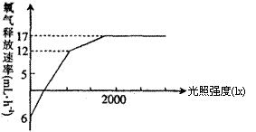 右图表示在不同光照强度下某植物的氧气释放量。该植物在2000lx光照强度下,每小时光合作用所产生的氧气量(mL)是