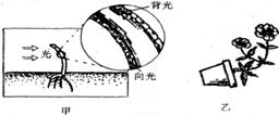 C.乙图中茎的生长体现了生长素的两重性能 D.乙图中植物根水平生长,以利于吸收土壤中的水分