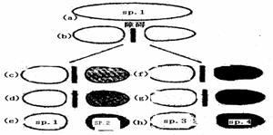 下图表示一个初始种群被环境因素分隔成两个种群后两种不同进化类型,sp.1、sp.2、sp.3、sp.4表示四个不同物种。下列叙述正确的是