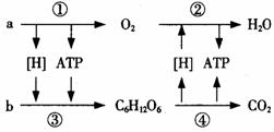 31、(9分)下图表示绿色植物叶肉细胞内发生的光合作用和有氧呼吸的过程,图中a、b为光合作用的原料,①-④表示相关过程,据图回答:(注:[ ]内填①-④中有关的数字)